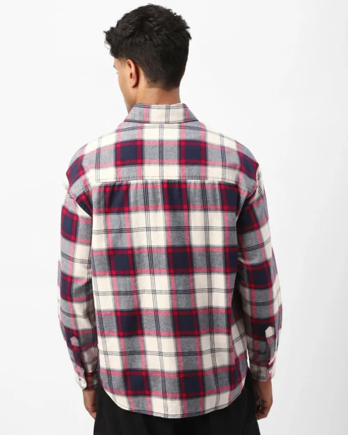 The Men’s Beige & Blue Checked Oversized Shirt is the ultimate layering essential. Wear it open over a graphic tee with baggy jeans and sneakers for that laid-back skater-boy aesthetic.